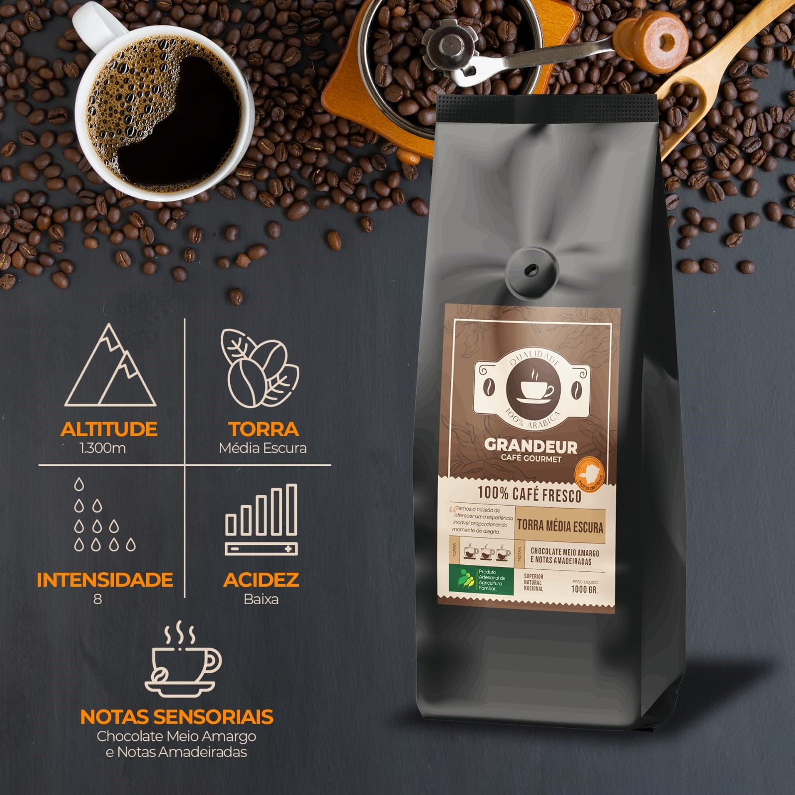 Grandeur Café Gourmet tem a missão de oferecer uma experiência incrível proporcionando momentos de alegria. Produção Artesanal juntamente com Agricultura Familiar elevam o padrão de qualidade dos produtos.